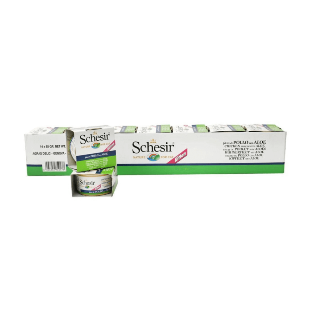 - مكونات مغذية وصحية: تحتوي على فيليه دجاج طري وصبار يعزز من صحة الجهاز الهضمي للقطط الصغيرة.