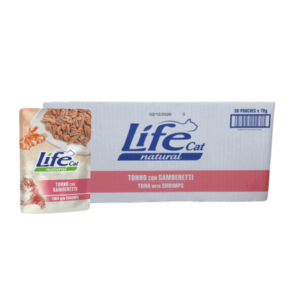 لايف كات ظروف طعام رطب للقطط بنكهة التونا والجمبري 30 حبة 70 جرام