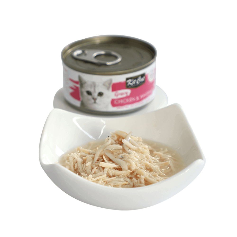 - نكهة طبيعية وجودة عالية! وصفة فريدة من الدجاج الطازج وصغار السمك في مرق شهي تمنح قطتك تجربة طعام لا تُقاوم مع كت كات طعام قطط.