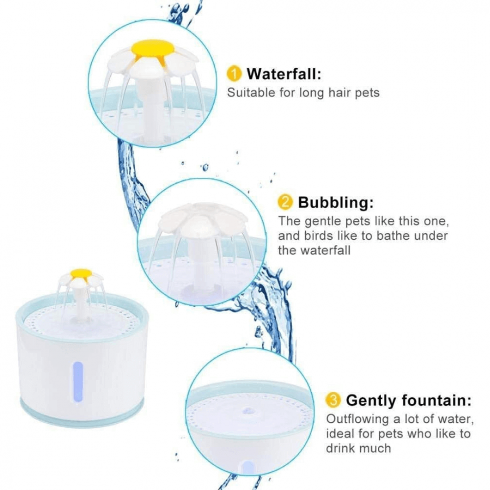 - صُممت نافورة للحيوانات الأليفة لتكون مُشجعة لهم على شُرب الماء، وبالتالي تُحافظ على الوظائف الحيوية وصحة الجسم.